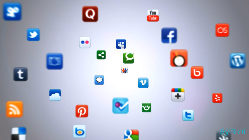 Uçuşan sosyal medya ikonları efekti ile tasarlanan intro çalışması